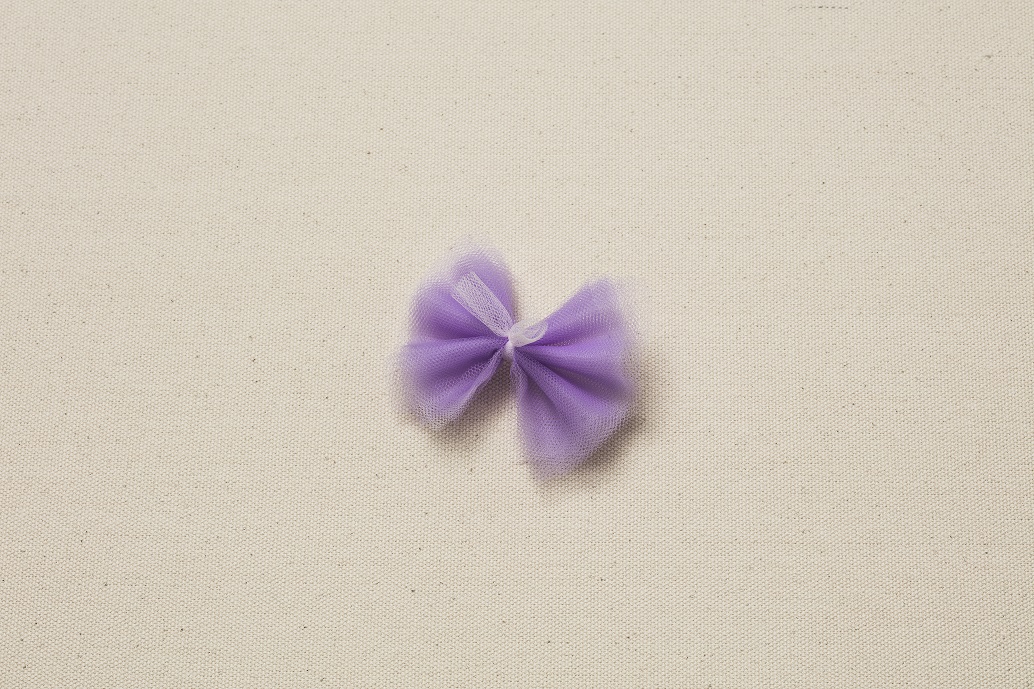 2.1の重ねたチュールの中央を細長く畳んだ一本で縛る。