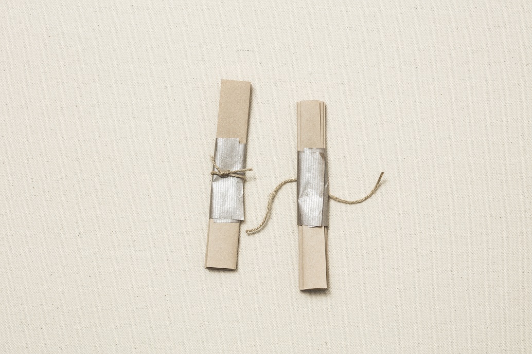 3.1に2の紙を巻き、麻紐を結ぶ。