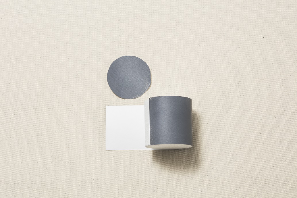 1.円柱型の発泡スチロールの側面と上面に、グレーのアクリル絵具を塗った紙を貼る。