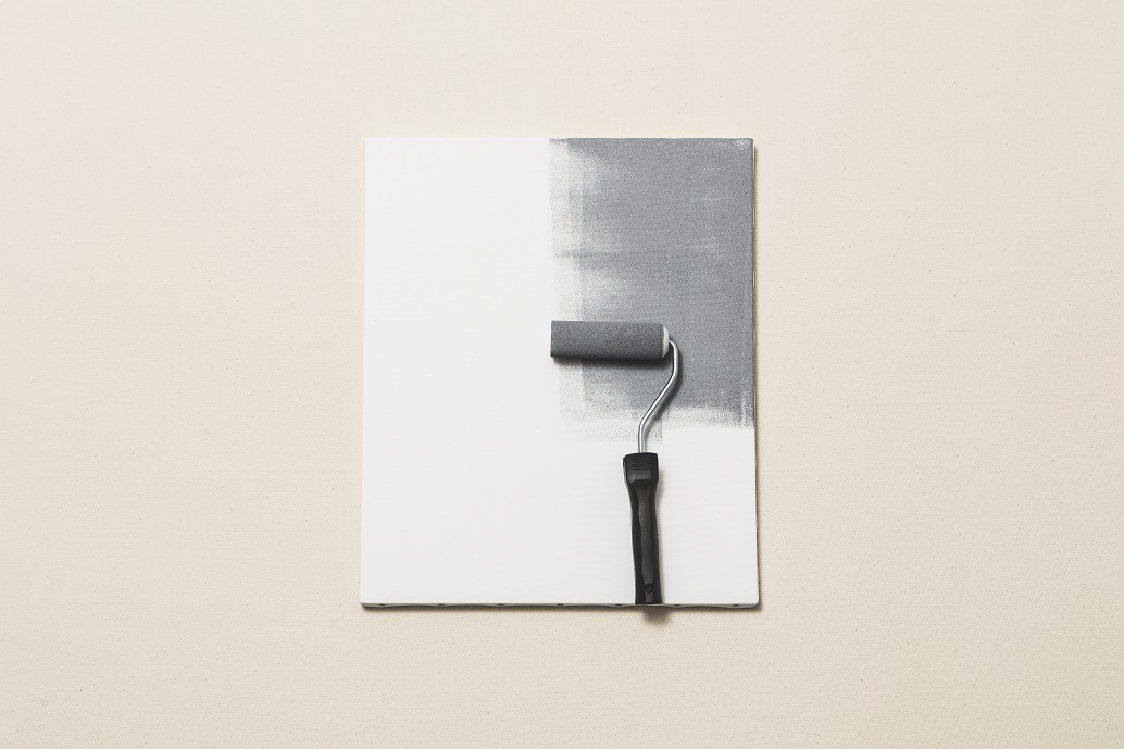 1.キャンバスにグレーのアクリル絵具を塗る。
