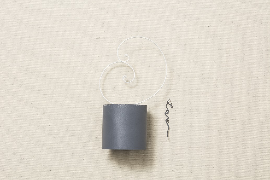 3.2のワイヤーに好きな文字に切り抜いた紙を付け、1の上面に挿す。