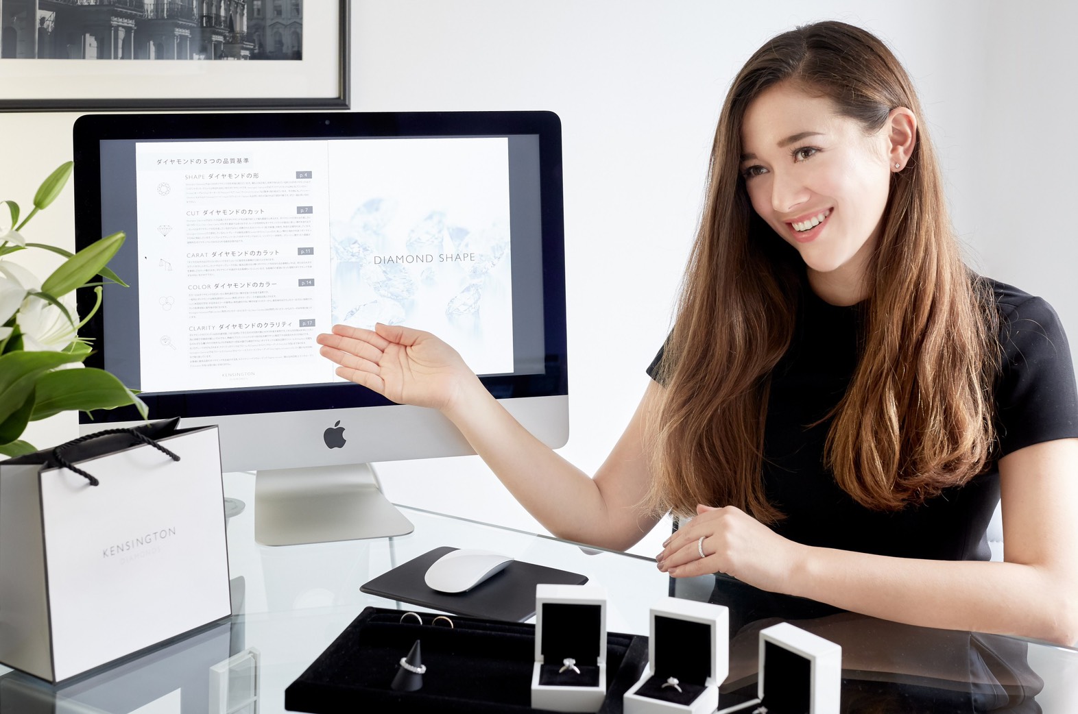 KENSINGTON DIAMONDSのプロデューサーであるハンナ・トンプソンさんがブランドをはじめたきっかけは、イギリス人の旦那様が婚約指輪を東京で探している時に思い通りのダイヤモンドのクオリティとデザインが予算内で見つからず、ロンドンまで指輪を買いに行ったという自身の経験から。日本の花嫁達に贅沢な大きさのダイヤモンドをお求め安い価格で届けたい、その想いで3年前にブランドを始めました。今や、こだわりのあるオシャレ花嫁達に大好評なのです。