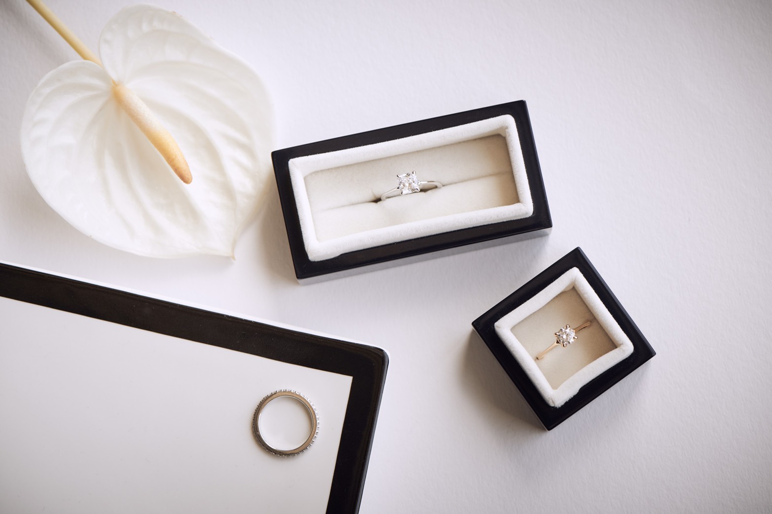今回店舗取材したカスタムオーダージュエリーブランドのKENSINGTON DIAMONDSでは、10,000点以上のダイヤモンドと24種類のセッティング(指輪のデザイン)から理想のブライダルリングが作れます。また、完全フルオーダーで世界にたった一つの特別なブライダルリングを一からデザインできるといったサービスもあります。センターダイヤモンドを世界中から探すこともしばしばあるのだとか。